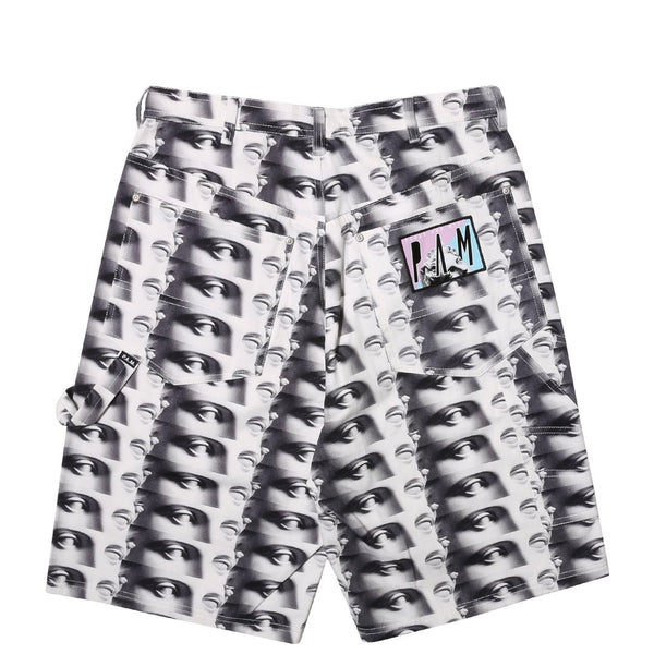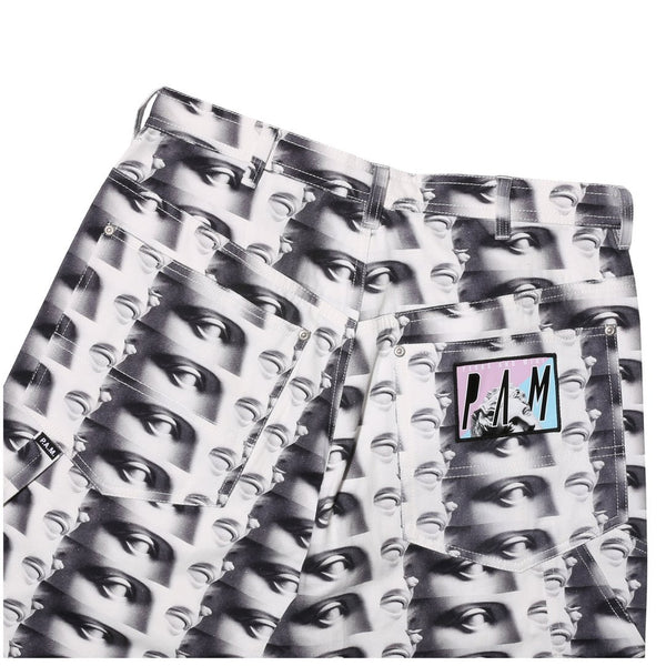 - P.A.M. back pocket patch label and “EYE LIFE” allover print.