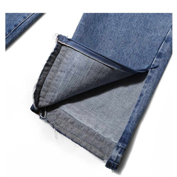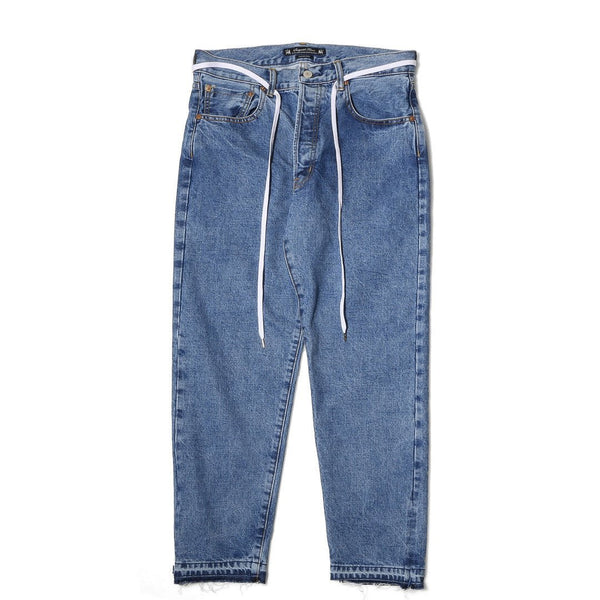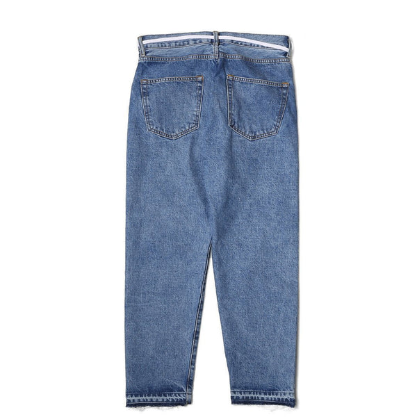 Blue jeans are universal, but this pair by Sasquatchfabrix pairs especially well with modern sportswear, thanks to subtly placed, track bottom style zippered ankles, and a shoelace drawstring through the belt loops.