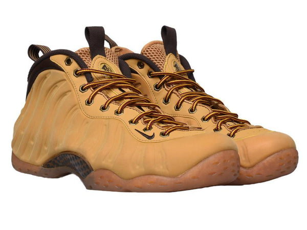 Continuing to build its legacy, the Air Foamposite One is re-imagined with a new aesthetic visibly showcased by an element-friendly, synthetic nubuck finish. Ready for everyday wear, all iconic design cues remain; the molded Foamposite upper, the carbon fiber shank, and 1Cent insignia on the tongue, heel, and outsole. The latest design has also been updated to reflect boot inspiration from top-to-sole, with rugged eyelets and laces, and a gum sole." - Nike, Inc.