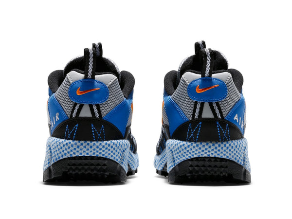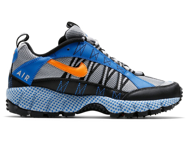 The 'Blue Spark' variant is a visual homage to an original Humara design. With the rugged, trail ready features rendered in an aggressive mix of grey, black, blue, and orange that can't help but recall Knicks - Heat slugfests and the Piazza era Mets, it isn't difficult to see why this outdoors shoe became a longtime street favorite.