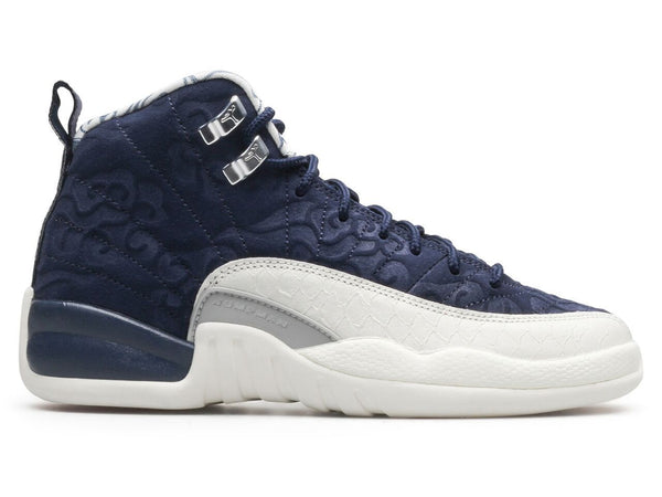 By acknowledging Michael Jordan’s evident and personal connection to Japan, it is no surprise that Jordan Brand has chosen the classic Jordan 12 silhouette as the third drop for their Fall “International Flight” pack. Featuring elements inspired by the Rising Sun Flag of Japan, the shoe is meant to pay homage to the country and the influence that the Jordan/Japan relationship has contributed to the game of basketball. With what may be the most-detailed version in the history of the silhouette, the shoe is dressed in a College Navy, Sail, and University Red upper, with a debossed, kimono print covering the upper and inner lining, as White, koi fish scale-textured mudguards provide contrast. The one-of-a-kind shoe is then finished off with University Red accents along the insole, undersole and heel, while kanji characters on the heel loop translate to “Jordan”, tying together the Japanese theme and completing the look.