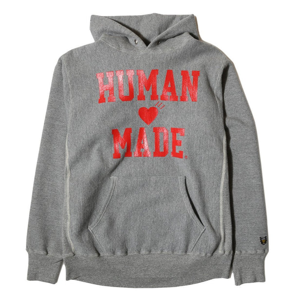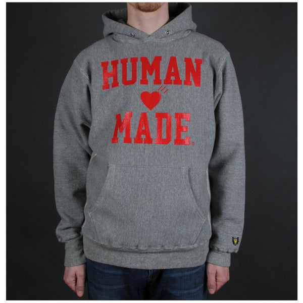 You'll swear that this heavy cotton jersey hoodie featuring classic athletic block typography has to have been pulled from an old gym bag circa 1966, but then the Human Made patch on the bottom left sleeve hits you like the Statue of Liberty. It was new all along.