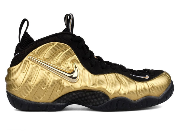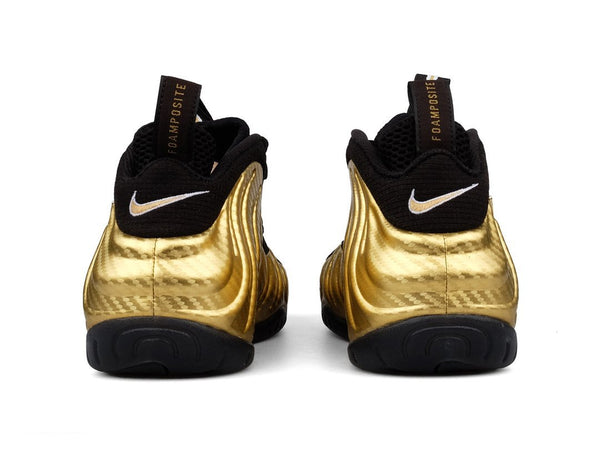 With that legacy to live up to, simple and subdued just isn't going to cut it when it comes to the Foamposite. This gilded edition of the game changing silhouette lives up to the shoe's bold, head turning history.