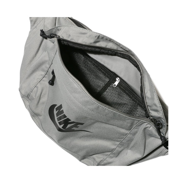 The Tech Hip Pack features multiple zip pockets, buckle closure, leather zipper pulls, and tonal Nike branding.