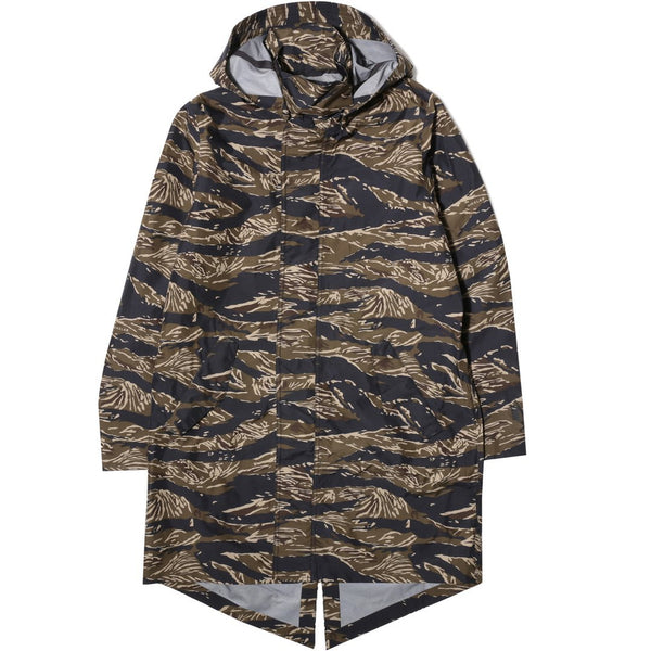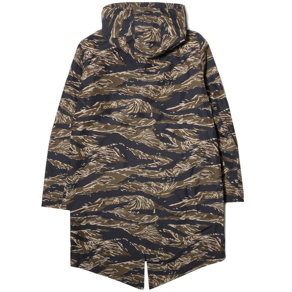 The NikeLab Essentials Tiger Camo Parka Men’s Jacket offers striking visual style and protection thanks to a water-repellent 3-layer fabric with taped seams and a specialized NikeLab camo print.