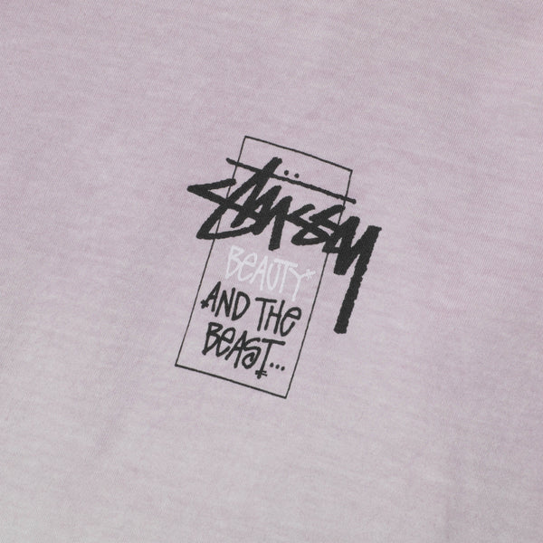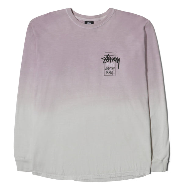 The Offering dip dyed long sleeve tee features 'beauty and the beast' text at the front and a skull/flowers back graphic. Either Stussy was watching a far darker version of a famous children's movie than everyone else, or "beauty" and "the beast" are philosophical concepts, visually represented by nature and death. When you say it out loud, that second one sounds more likely.