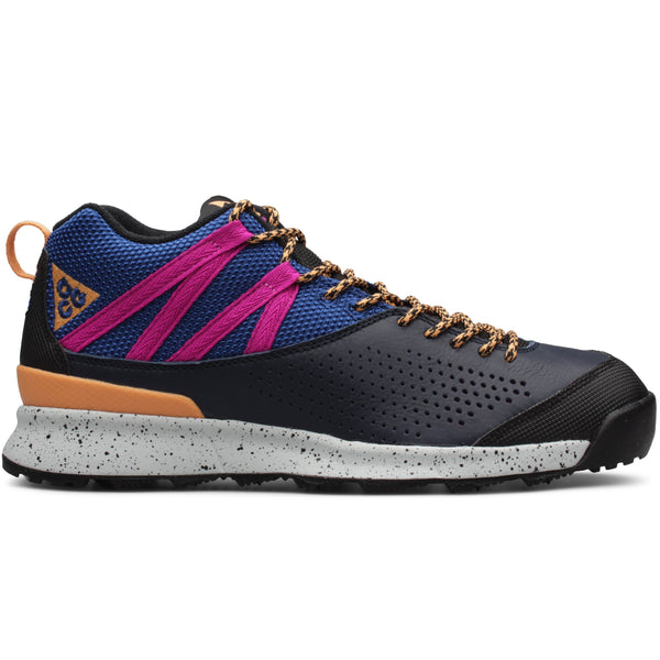 A more recent addition to the ACG family, the rock climbing/trail running silhouette cut a distinct figure with its minimalistic, swooshless branding. The latest iterations of this updated cult favorite sees the Okwahn’s nylon mesh/perforated leather upper, external support, rope lacing system, speckled midsole and rugged outsole rendered in bold, 90s ready colors.