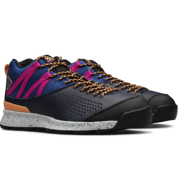 The Air Wildwood is a much loved, absolute classic from the early days of the ACG range. A phylon cushioned silhouette with visible design links to 1980s running models like the LDV, equipped with a durable leather upper, and beefed up, trail ready outsole, the Wildwood threw down the gauntlet for the ACG range. Familiar yet boundary pushing, the Wildwood proved to be an irresistible invitation to the kind of outdoors, adventure cross training that ACG advocated for. The returning Air Wildwood is featured in three colorways: a no-nonsense all-black, a more traditional running, white, black, and silver, with bright red and neon yellow accents, and a distinctly, 90s radical, black with neon green and vivid purple.