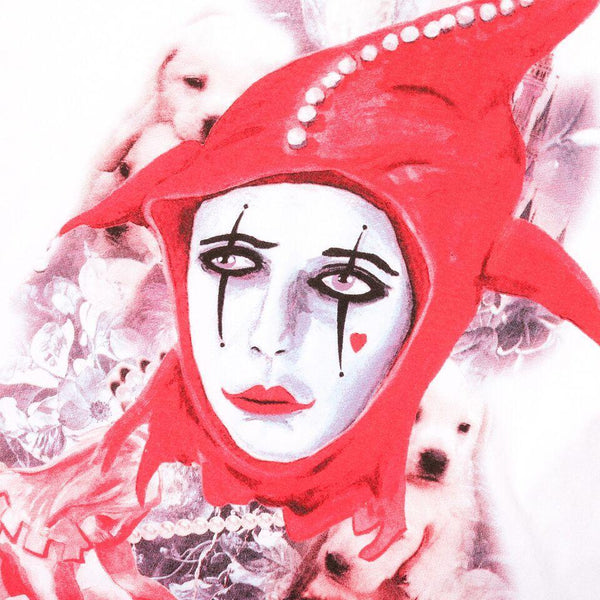 - Features ribbed neck band, graphic front and back print.