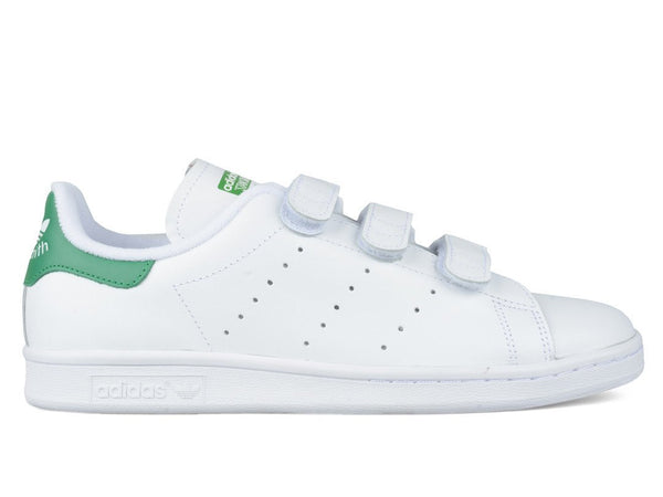 The Stan Smith has been produced in countless color and material variations. The Stan Smith Comfort, which features velcro closures in place of traditional laces showcases the universal versatility of the classic white and green Stan Smith.