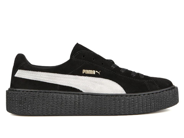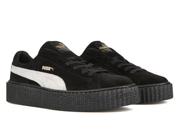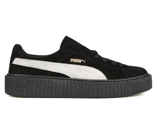 The Suede Creeper takes two classic, but seemingly disparate elements of streetwear, the Puma suede and the classic creeper, and combines them in a single shoe. The creeper, a thick, crepe soled style of shoe that has been a mainstay in the fashions of various rock subcultures, punk, new wave, ska, rockabilly, grunge, and goth, to name a few, since the style first gained popularity amongst the early, post-World War II rock scene.