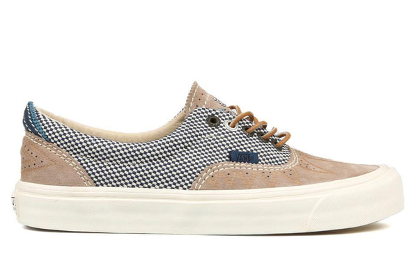 Two colorways, Mustang and Bordo, are this season's descriptor of the TH Sk8-Hi Huarache LX and the TH Era Huarache LX inspired by traditional Huarache techniques. Premium pigsuede and leather uppers harbor an eclectic array of detail following a clear vision. Pinked edges on heel pull and tongue overlay, laser-etching and perforation on heel, sidestripe and vamp in conjunction with idiosyncratic patterning inspired by Mexican symbolism on the heel, round leather laces, mismatched eyelets and a leather tongue overlay are the ingredients to the utmost in silhouette sophistication. For each colorway, Taka has found incredibly strong material variations between premium leathers, wool, and an Italian woven textile tied together by a partial sunray pattern on a unique waffle tread.