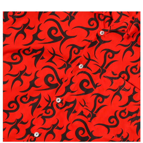 When Aries say they are subverting and challenging expectations associated with all of their sartorial influences, they aren't kidding around. For instance, they have reimagined the turn of the millennium tribal tattoo design as a stylish, casual button down, without the word "suck" appearing even once.