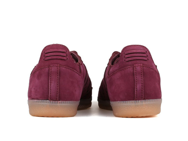 The Deep Hue Adidas Consortium Samba offers a modern, fashion forward take on an Adidas icon, as bold, tonal, suede uppers with threaded stripes standing in for traditional leather, sit atop the classic gum sole.