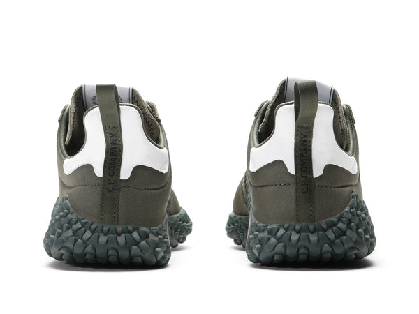 The collection’s apparel component features an adept melding of athletic wear and the innovative fashion aspects of the C.P. Company. A new take on the C.P. Company’s most readily recognizable feature, the built in goggles and wristwatch cover equipped jacket are reinterpreted in a new outerwear silhouette, while sportswear fixtures like hoodies, track jackets and t-shirts are also made over to include distinctive C.P. Company features.