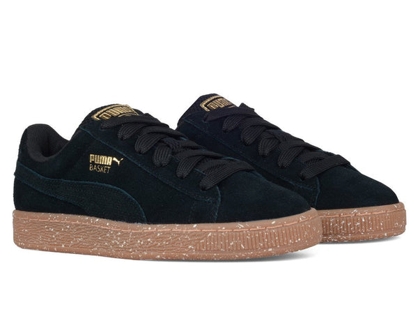 The latest offerings from Careaux x Puma represent a sleek, minimalist take on the Suede and the Blaze Of Glory. Solid, tonal uppers and speckled midsoles, pink for the women’s Suede and black for the men’s Suede and Blaze Of Glory, contrast with glimmering, metallic gold details for a subtle, yet eyecatching take on these classic models.