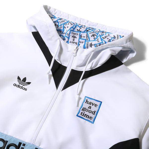 Adidas and Have A Good Time follow up this past fall’s collaborative effort with a new capsule collection for Spring/Summer ’19. While the previous collection emphasized timeless basics from the three stripes archive, for their second go-round, the two brands have zeroed in on a late 1980s/early 1990s casual aesthetic, adding a knit, graphic crewneck featuring the Adidas trefoil on the front and Have A Good Time’s box logo on the back, a color blocked, half-zip, hooded pullover with, and circa 1991 over the shoulder Equipment stripes soccer jersey to the tracksuit and t-shirt foundation.