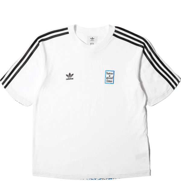 The collection’s footwear sees two all-time icons in the Gazelle Super and the Superstar, blend the timeless and familiar with the bold, all-over graphic approach of Have A Good Time, as a bold, all-over Have A Good Time logo lining and text, co-branding details bring an airy, contemporary feel to these classic silhouettes.
