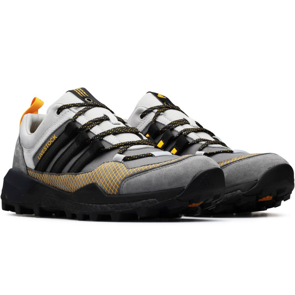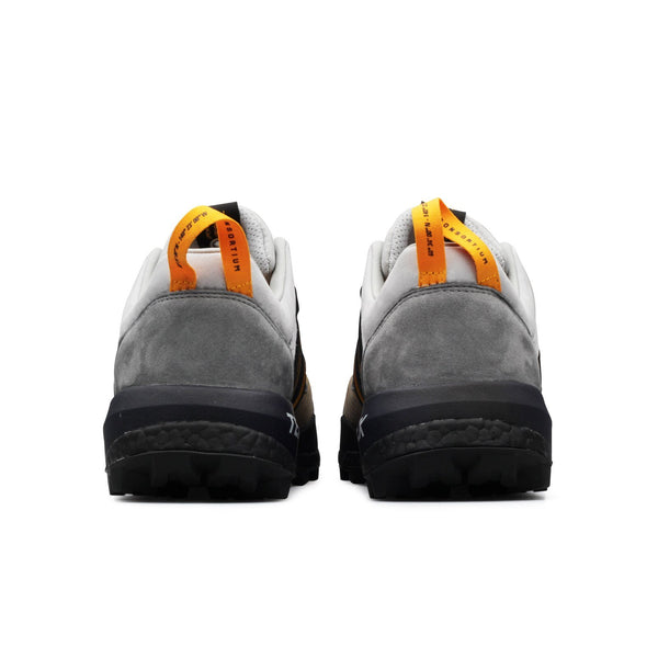 Two trail ready silhouettes, the Ultra Tech and the Terrex Skychaser have been made winter ready, in style, with an innovative mix of functional tech and premium materials. The classic 90s shape of the Ultra Tech is outfitted with a synthetic nubuck in a bold, rich gold colorway, along with Gore-Tex lining and translucent TPU overlays. The familiar Dellinger Web equipped EVA midsole is joined by a toggle, speed-lacing system.