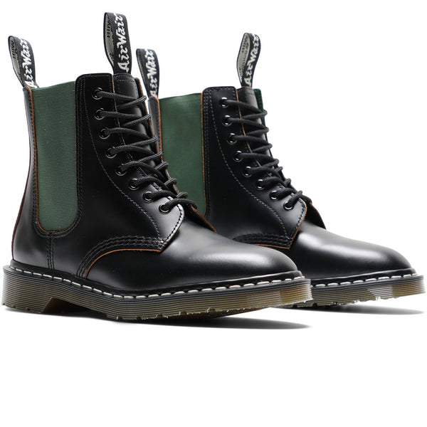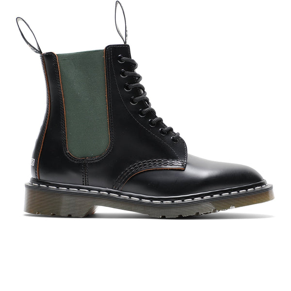 A collaborative edition of the 1460 boot sees Tokyo style mavens Neighborhood infuse the classic style and craftsmanship with their signature brand of forward looking, experimental punk influences. The old-school look of smooth, vintage style leather is offset with contemporary tweaks, like double heel loops, with one placed at the tongue, and contrast, Chelsea boot inspired side gussets, for easy on/off pulling.