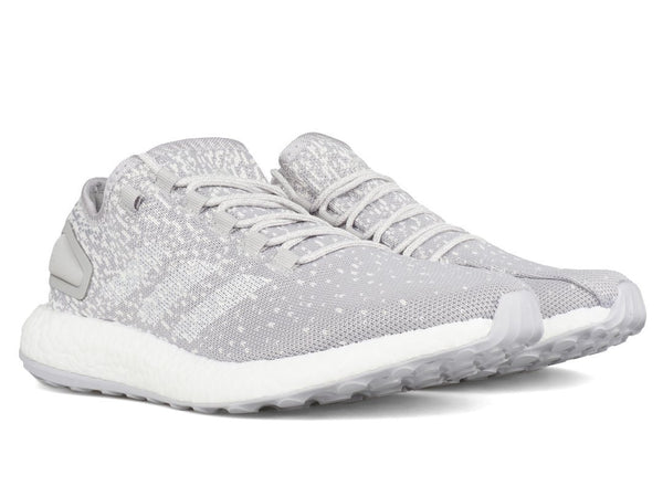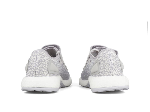 Reigning Champ, brings their innovative, refined interpretations of sportswear to the ultra-popular, ultra-modern Adidas Pureboost. The soft, grey, circular knit upper combines the timeless feel of athletic sweatpants with the modern design sensibility of the Boost cushioning, and progressive lacing.